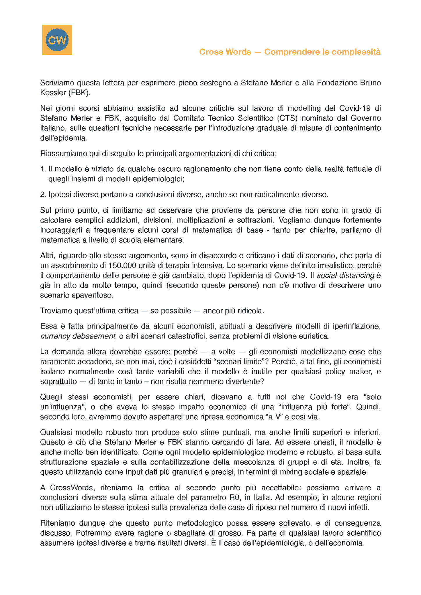 Lettera di endorsement modello