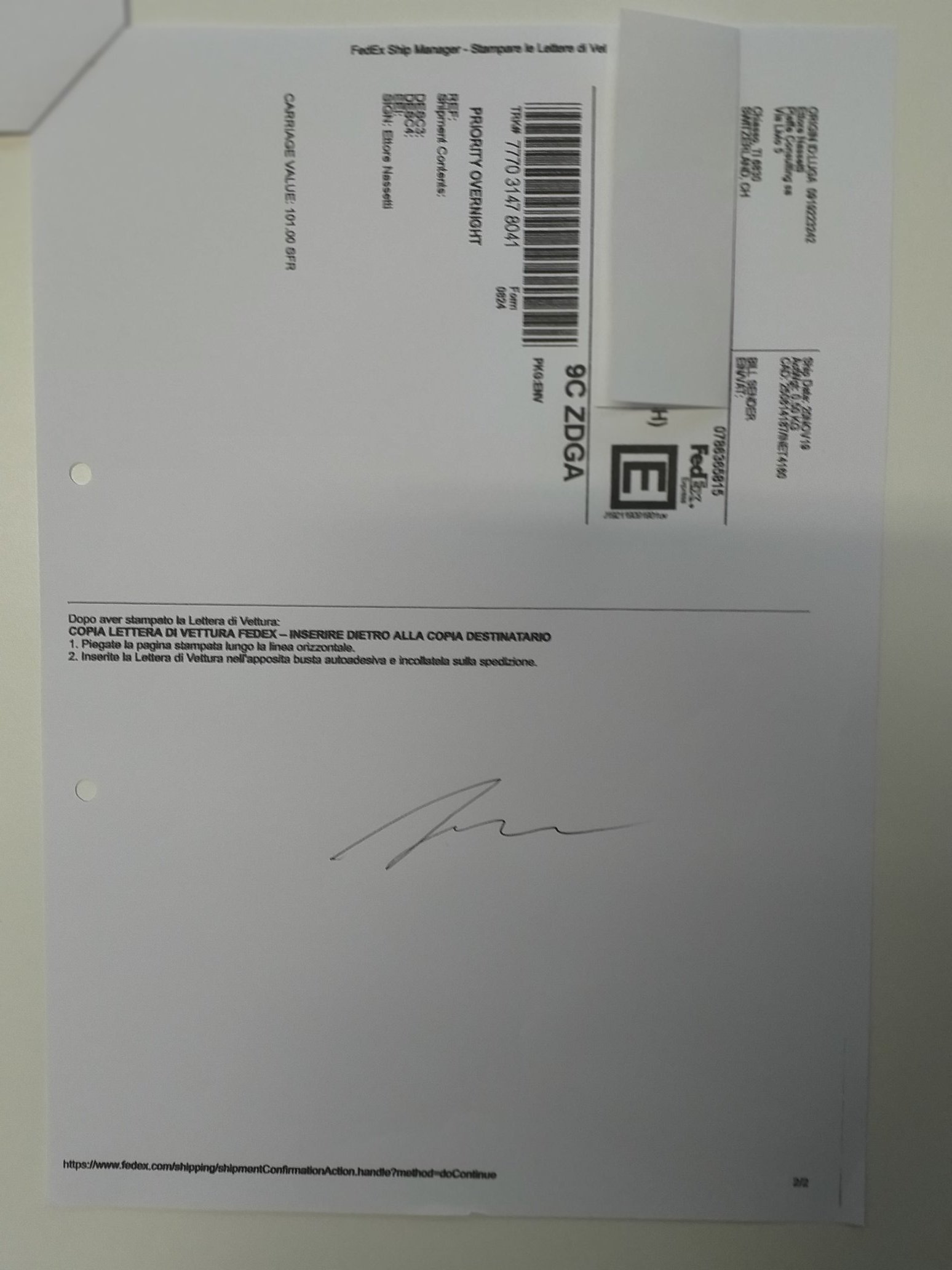 La lettera di vettura